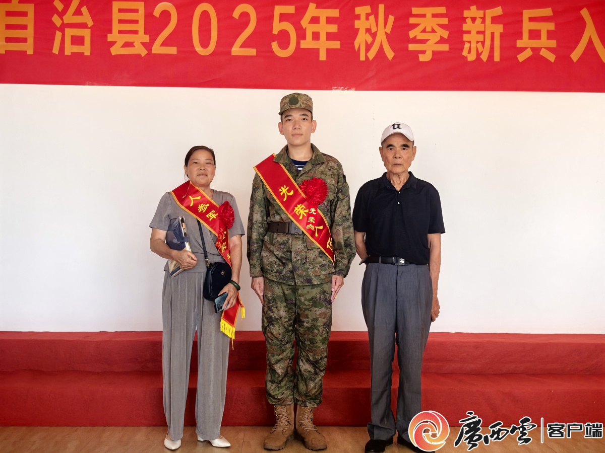 視頻來源:富川瑤族自治縣委宣傳部 “熱血涌動凌云志,青春逐夢踏征程。”9月17日,富川瑤族自治縣2025年征兵工作圓滿收官,經體格檢查、政治考核等多環節嚴格篩選,一批優秀青年脫穎而出,他們于次日懷揣報國壯志,奔赴祖國各地軍營,以青春熱血踐行使命,書寫新時代青年擔當。 深藍夢牽兩代人,父輩故事種下報國志 陳天樂的父親陳雪凡,曾于1968年至1971年在廣西欽州龍門灣海軍部隊服役,擔任海軍司令部通信站通信員,肩負“確保作戰命令與各類指令信息傳遞暢通無阻”的重要使命。兒時的陳天樂,最愛圍在父親身邊,聽他講驚濤駭浪中守護海疆的經歷,講戰艦上與戰友并肩作戰的情誼。家中泛黃的軍裝照、父親珍藏的海軍帽、一枚枚沉甸甸的勛章,成了他對海軍最初的向往。 “我從小就對海軍有著深厚的感情,這不僅僅是因為我自己向往那浩瀚的海洋和威武的軍艦,更因為我的父親是一名退役老海軍。我想成為和他一樣的人,守護祖國的萬里海疆!從前是父親駕艦護航,如今輪到我接過鋼槍。”陳天樂身著嶄新軍裝,身姿挺拔、眼神堅定地說:“這身軍裝里,藏著兩代人的信仰。” 每當陳雪凡談起對孩子的期望,他總是滿懷深情地說:“我希望他能成為新時代的中國軍人,當國家需要的時候,召之即來,來之能戰,戰之必勝。”