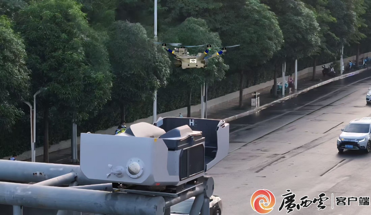 東博會、峰會期間,南寧警方啟用新一代警用無人機機巢智慧系統為交通管理工作“插上智慧翅膀”,為盛會交通保駕護航。盧鵬 攝 數智賦能交通,優化出行效率 針對涉會場館周邊交通車流大、易擁堵的特點,南寧警方依托AI交通管理體系,不斷優化調整各項交通保障措施,為盛會交通保駕護航。 “車道內請勿停車,如發生故障請及時設置警示標志并撤離至安全地點。”9月16日上午,民族大道楓林路口一輛小貨車因故障停車未設警示,南寧市公安局交管支隊指揮中心“一鍵起飛”無人機,通過高空喊話提醒駕駛人規范處置,及時消除隱患。 這一高效應急場景,得益于南寧警方引入無人機機巢的結果。據南寧市公安局交管支隊相關負責人介紹,南寧警方在全市相關主干道的交通設施上,安置無人機機巢,全天候候命。同時,依托無人機機巢搭載AI智能分析算法,機巢內的無人機集自動起降、精準巡航、實時回傳、喊話提示、紅外夜視等功能于一體,依托智能飛行平臺可實現交通事故現場快速勘查、交通擁堵監測與智能疏導、交通違法智能勸導與執法、交通組織優化與決策支持等四大應用功能。東博會、峰會期間,無人機機巢在涉會場館周邊多個路口投入應用,讓安保交通管理工作“插上智慧翅膀”。 此外,南寧警方還提前對涉會主要場館附近路口紅綠燈進行全息智慧化改造,通過“全息感知+邊緣計算+AI”技術組合,提升智能交通信號控制水平,緩解交通擁堵情況,實現了從“車等燈”向“燈看車”的轉變。 據統計,今年東博會、峰會期間,涉會場館周邊道路交通通行效率提升13%,周邊重要路口交通延誤時間減少15%。