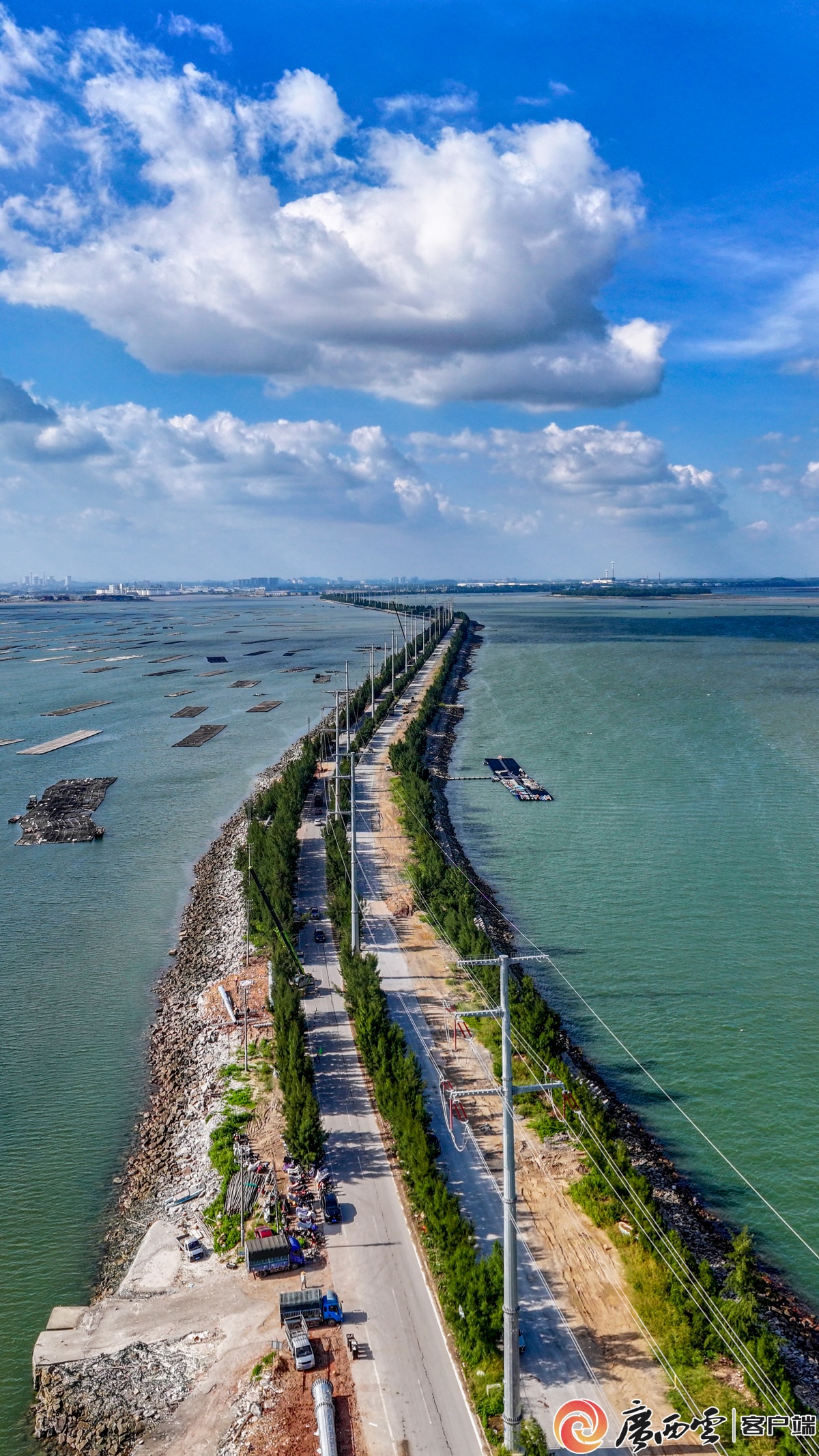 藍天白云下的三墩公路。通訊員 陸敏 攝 許多人知曉三墩公路,始于它的“紅”。“相約三墩公路,奔赴一個碧海藍天。”“長焦鏡頭定格,大海、輪船,妥妥的大片即視感……”僅在社交媒體“小紅書”上,與三墩公路相關的筆記就超4萬篇。自2009年建成以來,這條填海修筑的長13公里的海上公路,便以原生態景觀吸引眾多游客自發打卡。