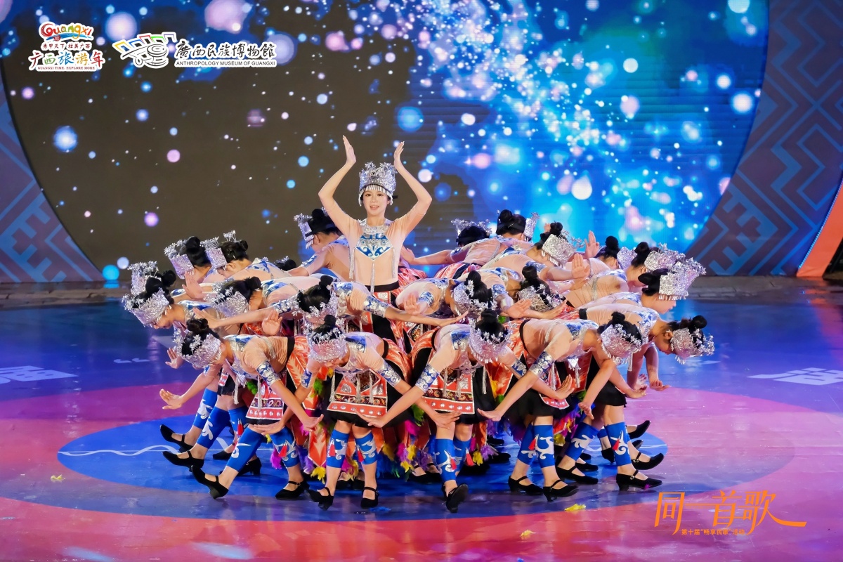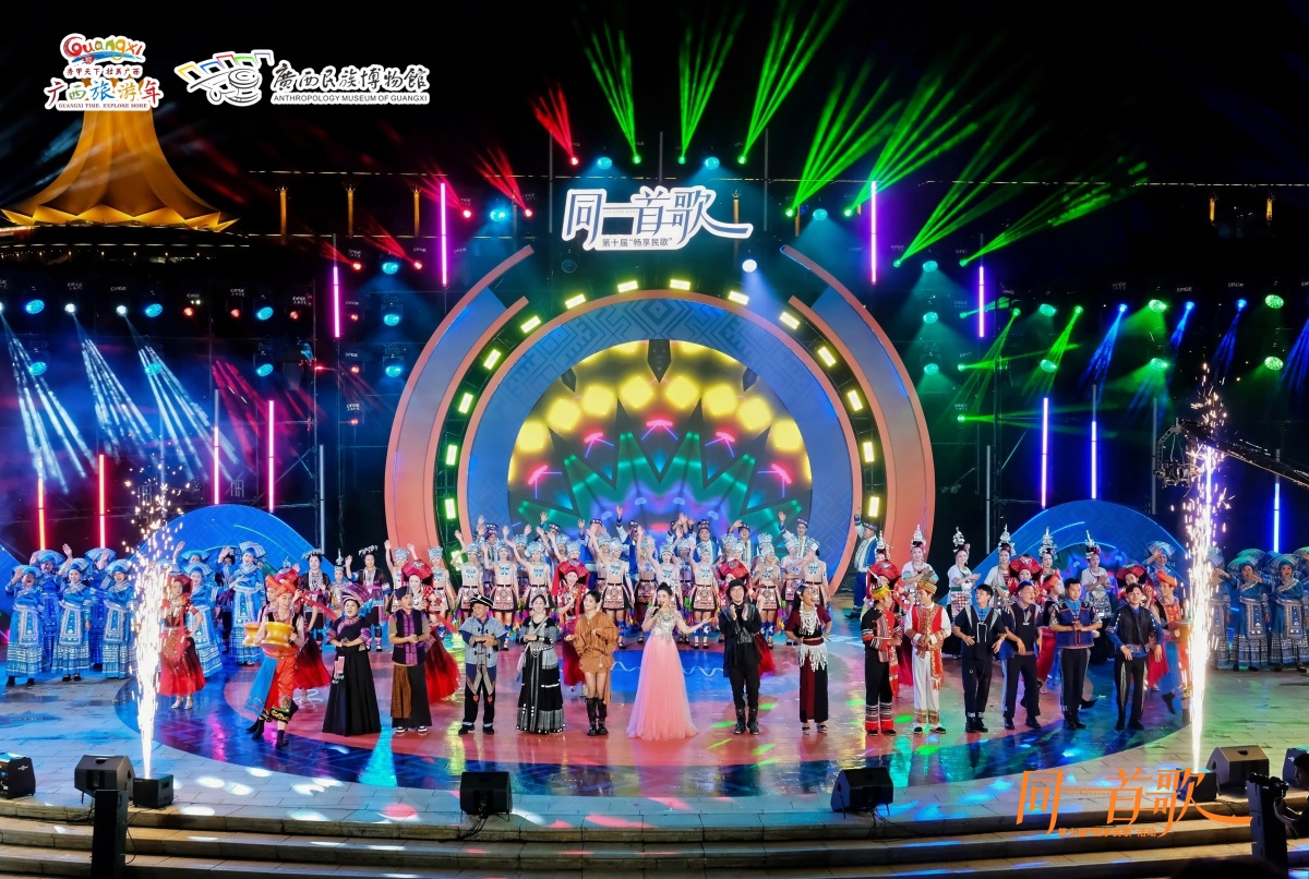 9月26日晚,由自治區文化和旅游廳、自治區民族宗教事務委員會共同主辦,廣西民族博物館承辦的第十屆“暢享民歌”精品匯演在南寧民歌湖國際音樂小鎮圓滿舉行。本屆匯演以“同一首歌”為主題,匯聚廣西、貴州、云南三省區及外國友人,以山水為幕、民歌為媒,奏響民族團結的壯美和聲,為觀眾奉獻了一場聲景交融的沉浸式民歌盛宴。