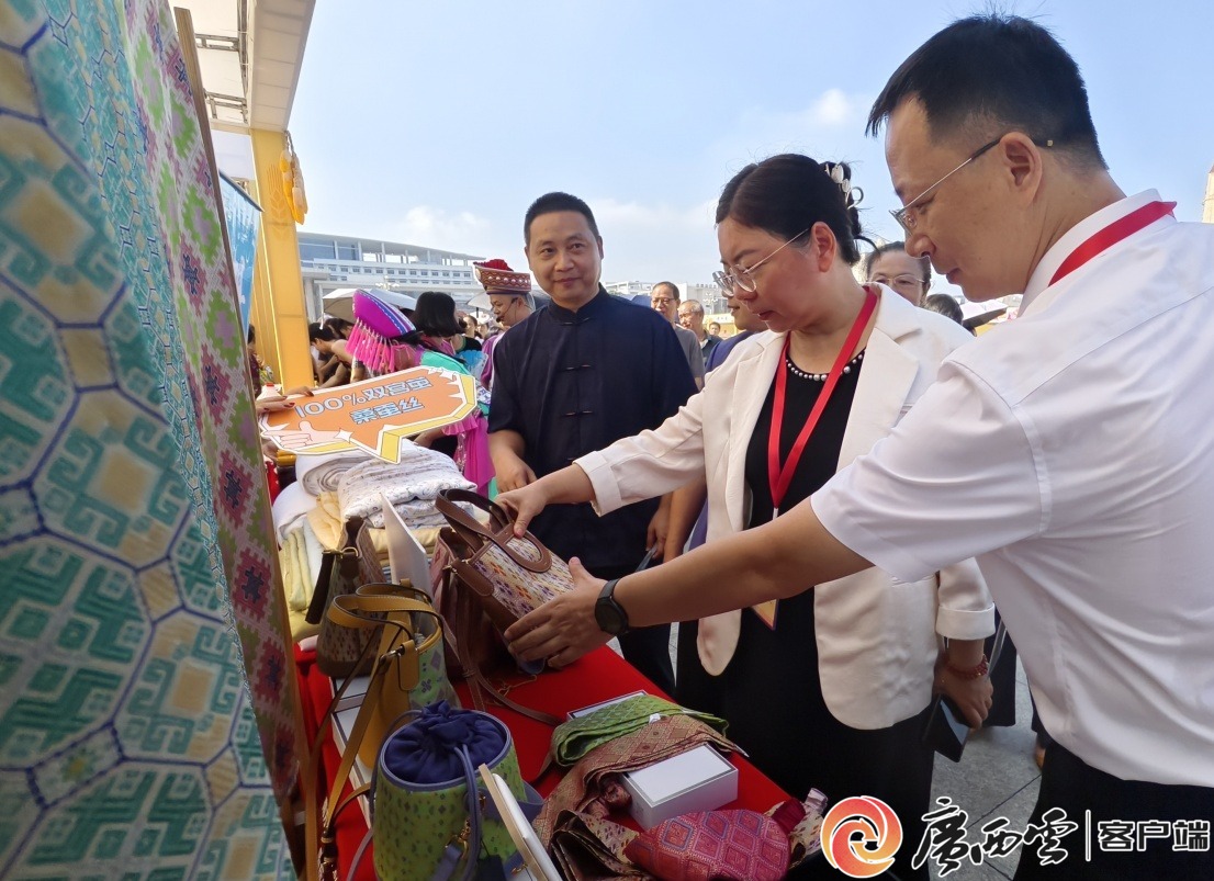 嘉賓觀摩河池的絲綢壯錦產品。 “我們特地帶來了全真絲壯錦的相關產品,有包包、絲巾飄帶、衣服、首飾品,在剛剛結束的中國—東盟博覽會上,這些產品成了參會嘉賓的伴手禮。”廣西嘉聯絲綢股份有限公司行政總監袁毅現場表示。展銷現場,嘉聯絲綢展出的真絲壯錦及其制品讓前來觀摩的嘉賓和商家贊不絕口。 據了解,河池全市桑園面積、蠶繭產量連續20年全國第一,繭絲加工能力連續15年排全國地級市第一,以河池市為主導的廣西蠶桑優勢特色產業集群成功獲批創建。 嘉聯絲綢生產的全真絲絲綢壯錦產品。 其中宜州區以“中國絲綢新都”的擔當,在農業現代化征程中屢創佳績。目前,宜州桑園面積達39.6萬畝,鮮繭年產量連續20年居全國縣域首位,帶動8.5萬戶蠶農年均增收6.6萬元。 通過構建“種桑養蠶—繅絲織綢—綜合利用”全產業鏈,宜州已形成從桑枝生物堿提取、全真絲壯錦生產到蠶沙有機肥加工的完整體系,全產業鏈產值突破100億元,“宜州繭絲綢”入選首批中國消費名品。 廣西大宗繭絲交易市場、桑蠶繭絲交易倉儲中心等先后落地宜州,與浙江大學、浙江嘉欣絲綢等高校和企業的產學研合作持續深化,宜州已發展成全國最大蠶用物資集散市場,繭絲綢交易指數成為中國乃至世界桑蠶繭絲行業的風向標。 河池豐收節啟動儀式現場。 |