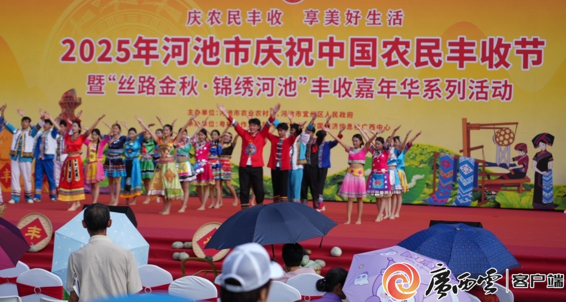 視頻攝制:卿要林 9月28日,2025年河池市慶祝中國農民豐收節暨“絲路金秋·錦繡河池”豐收嘉年華在“中國蠶桑之鄉”宜州盛大啟幕。河池圍繞“慶農業豐收・享美好生活”的節日內涵,聚焦“粵桂共育桑蠶豐・金秋織就致富路”的特色主題,通過“慶豐收、曬成果、促協作”系列活動,集中展示河池農業現代化成就,搭建跨省區產業合作平臺。 啟幕儀式上的文藝表演。 豐收答卷 特產集群化發展 河池市山清水秀生態美,是中國首個地級“世界長壽市”,擁有“中國香豬之鄉”“中國蠶桑之鄉”等十多個美譽,是粵港澳大灣區食品谷優質農產品供應基地。近年來,河池市大力發展生豬、牛羊、桑蠶、漁業、水果、蔬菜、油茶、特色家禽、中藥材、林下經濟等農業“十大百萬”特色產業,推動“土特產”集群化發展,交出了一份份沉甸甸的豐收答卷。