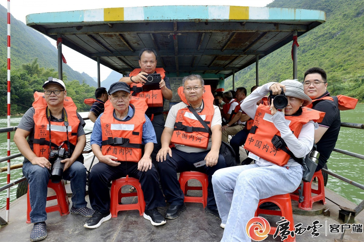 文藝工作者們乘船暢游紅水河。楊景洪 攝 采風期間,文藝工作者們通過實地參觀、聆聽講解、現場交流等方式,以腳步丈量土地,用心靈感受變遷。他們漫步農家微田園,認真聆聽講解,圍繞農作物種植與產業發展規劃深入交流,觸摸鄉村振興的“產業脈搏”;走進正在規劃建設的文化長廊,積極出謀劃策,為鄉村文化建設貢獻智慧;踏入凡一平舊居,在筆墨書香中探尋文學與故鄉的深厚聯結,感受文字背后的鄉土情懷;探訪“上嶺戀人”露營地,看帳篷點綴林間、聽游客歡聲笑語,記錄鄉村旅游的蓬勃活力;乘船暢游紅水河,在碧波蕩漾間,將都安的山川秀水與人文景觀盡數收入鏡頭與筆端。 “回到這里,心永遠是暖的。”都安瑤族自治縣作家協會主席黃海燕將上嶺屯視作自己的“精神出發地”,她動情地回憶起露營地建設時的場景:“全村人擰成一股繩,白發老人帶著工具來幫忙,外出年輕人請假回來搬磚,孩子用小桶運砂石,沒人計較得失,只盼著作家筆下的土地能‘活起來、美起來’。”