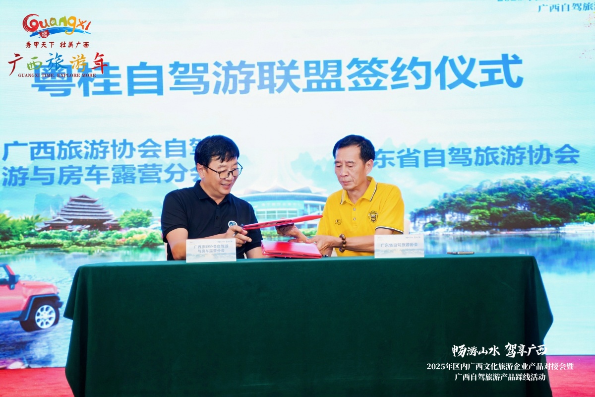 9月29日,由自治區文化和旅游廳主辦的“暢游山水 駕享廣西”2025年區內廣西文化旅游企業產品對接會暨廣西自駕旅游產品踩線活動在南寧舉行,粵桂自駕旅游聯盟同步成立。