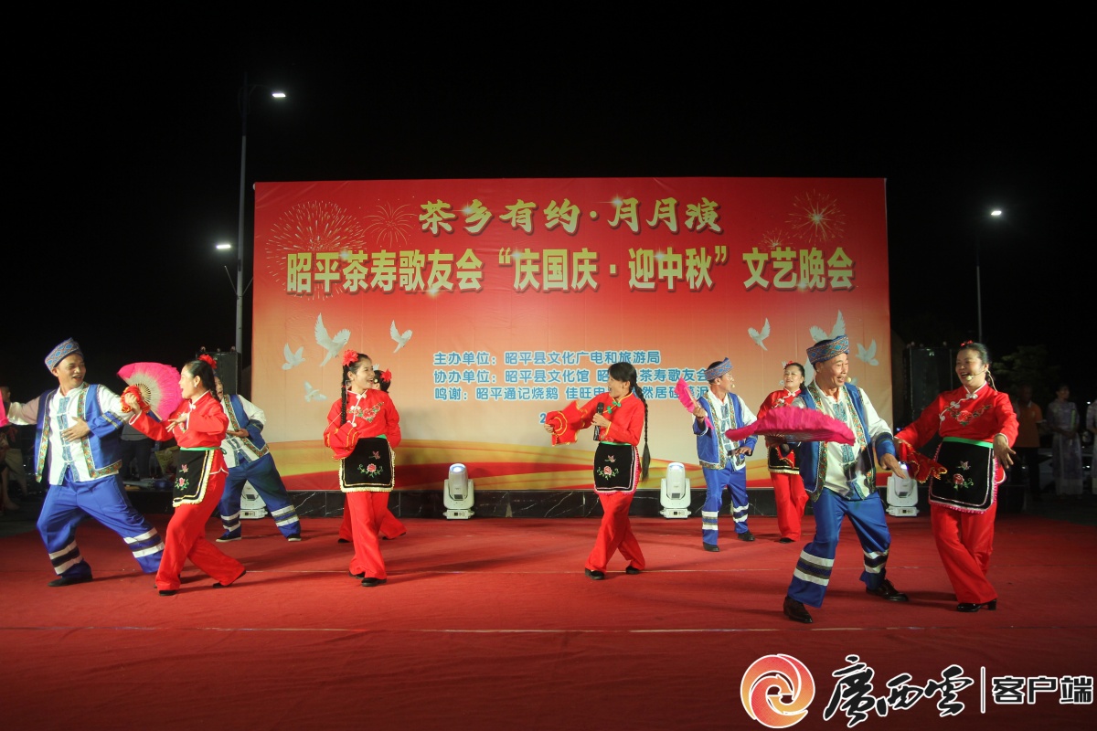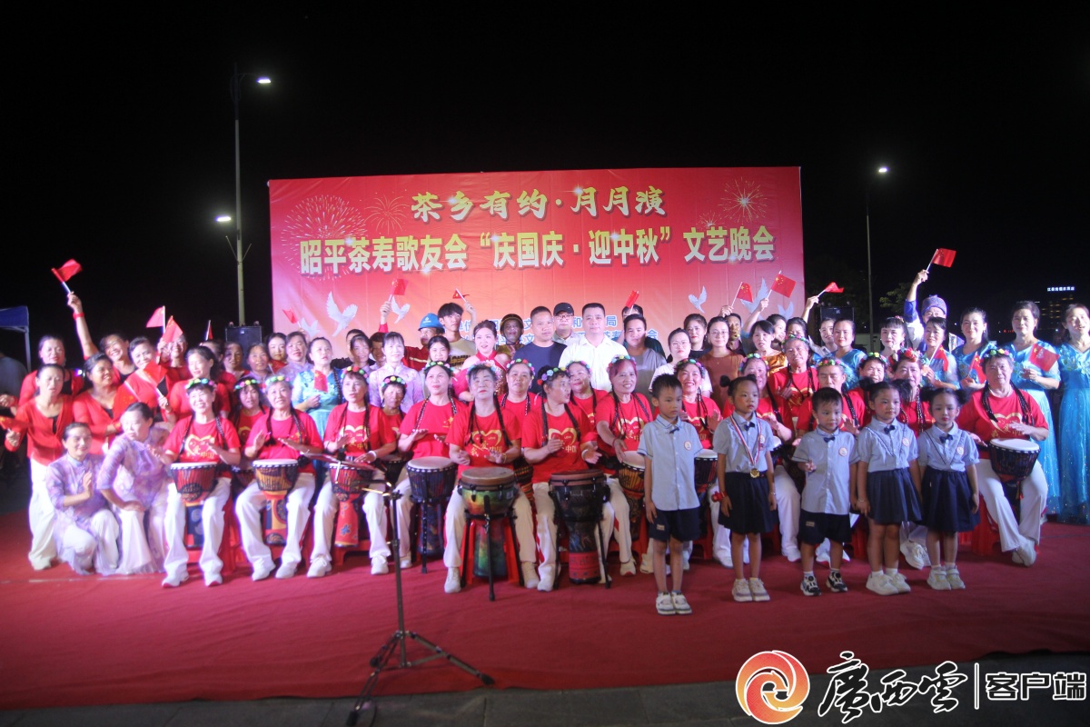 晚會表演。 當現代藝術表達撞上熾熱家國情懷,晚會的感染力瞬間突破頂點。男聲獨唱《我的中國心》開嗓便滿是力量,字字鏗鏘間盡是對國防力量的敬仰;非洲鼓合奏《沒有共產黨就沒有新中國》以明快鼓點重構經典,用新潮編排解鎖愛國深情;舞蹈串燒《飲醉山河》更將流行舞步與傳統韻律交織,讓年輕一代的昂揚風貌躍然舞臺。 “節目里既有茶鄉的煙火氣,又有對祖國的祝福,看得特別振奮!”來自廣東肇慶的游客莫女士專程前來觀看演出,她表示晚會讓自己既領略了昭平的文化魅力,又感受到了濃厚的雙節氛圍。現場觀眾紛紛舉起手機記錄精彩瞬間,掌聲與歡呼聲在桂江岸邊持續回蕩。 “沒想到家鄉的舞者能跳出這么有感染力的舞蹈!”家住廣場附近的居民李阿姨連連稱贊,“看《故鄉情》時,就像回到了小時候跟著媽媽去茶園的日子,又溫暖又親切。”靈動的舞姿不僅點燃了現場氛圍,更讓觀眾在藝術之美中讀懂了茶鄉風情與家國情懷。 作為昭平縣“茶鄉有約”文化品牌的重要組成部分,本次晚會以“月月演”的群眾文藝形式,將長壽文化、茶文化與節慶主題深度融合。 “活動不僅豐富了群眾精神文化生活,更以文化為紐帶助力文旅融合,為縣域文化振興注入鮮活動力。”昭平縣文化廣電和旅游局黨組書記、局長徐懿萍介紹。