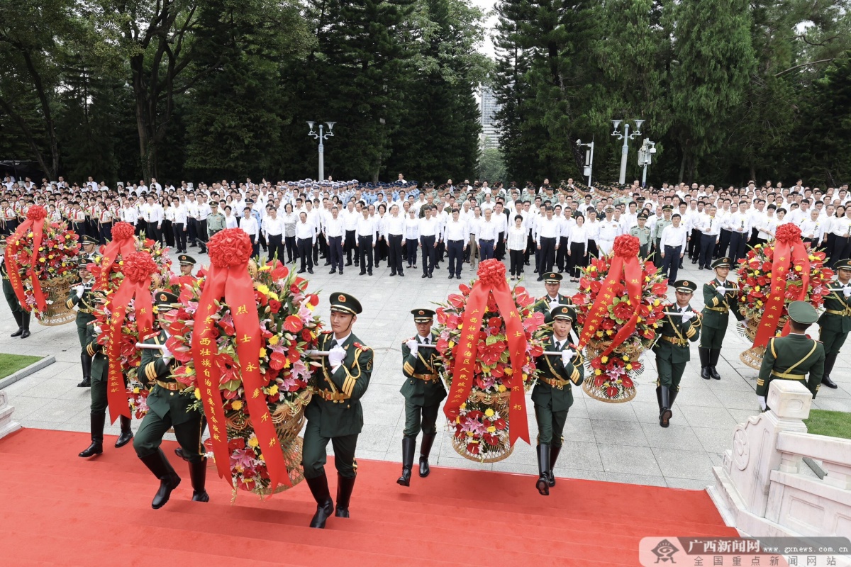 廣西云-廣西日報9月30日訊(記者 羅昌亮 鐘小啟)今年是中國人民抗日戰爭暨世界反法西斯戰爭勝利80周年。9月30日是國家設立的烈士紀念日,習近平總書記等黨和國家領導人同各界代表一起,在天安門廣場向人民英雄敬獻花籃。廣西各界代表在南寧市人民公園革命烈士紀念碑前也舉行了烈士紀念日向人民英雄敬獻花籃儀式。自治區黨委書記、自治區人大常委會主任陳剛,自治區主席韋韜,自治區政協主席孫大偉,自治區黨委副書記王維平,同各界代表一同出席儀式,深切緬懷為民族獨立、人民解放和國家富強英勇獻身的革命先烈。