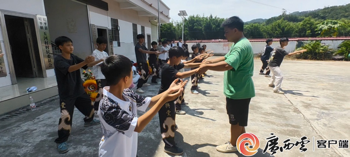 一群孩子在學習舞獅技術。 他不僅自己捐出了1600多元養老金,還廣泛宣傳帶動村民籌資。令他感動的是,村民們積極響應,共籌集了1.8萬元,用于支付教練費用和購買器材。 “以前村里開展文化文藝活動缺少了舞獅隊,現在我們要培養自己的隊伍,村里群眾的精神文化生活也跟著豐富了。”姚明偉表示,每天訓練,他都會早早來到廣場,打掃衛生、燒水泡茶、準備點心。他說自己年紀大了,做不了教練,但做好后勤保障也是為文化傳承出份力。 玉河村黨支部書記姚佩文深知,舞獅訓練的意義遠不止于文化傳承。“過去暑假,我們要花大量精力防溺水、保障學生安全。現在孩子們來學舞獅,不僅安全有保障,培養了紀律性和團隊精神,還是移風易俗的好方式。” “南獅表演作為一種非物質文化遺產,我們要讓傳統文化活起來,成為鄉村振興的精神動力。”玉河村黨支部書記姚佩文表示,舞獅訓練只是玉河村弘揚優秀傳統文化的一個起點,村里還將舞獅表演與廣場舞表演、歌曲表演、閱讀活動等文化活動相融合,讓鄉村文化煥發新活力。 黃昏時分,一天的訓練結束了。孩子們雖然疲憊,卻仍意猶未盡地討論著剛才學習的動作。夕陽的余暉灑在廣場上,將他們的身影拉得很長。 鑼鼓聲歇,獅頭被小心翼翼地收進器材室。這個秋天,在昭平縣的一個普通村莊里,傳統文化正以一種最鮮活的方式延續著自己的生命。而比技藝傳承更珍貴的,是那份深植于鄉土的文化自信,正在新一代的心中生根發芽。 “鄉村振興不僅要塑形,更要鑄魂。”昭平縣昭平鎮社會事務辦主任溫萍表示,群眾自發捐款支持的不僅是一支舞獅隊,更是一個文化振興、鄉風文明的美麗夢想。 “文化振興,是讓昭平的文化‘根脈’扎得更深、‘枝葉’長得更茂。”昭平縣文化館館長表示,培育更多基層文化帶頭人,讓每一個鄉鎮都有自己的文化名片,才能真正讓文化振興惠及千家萬戶。
