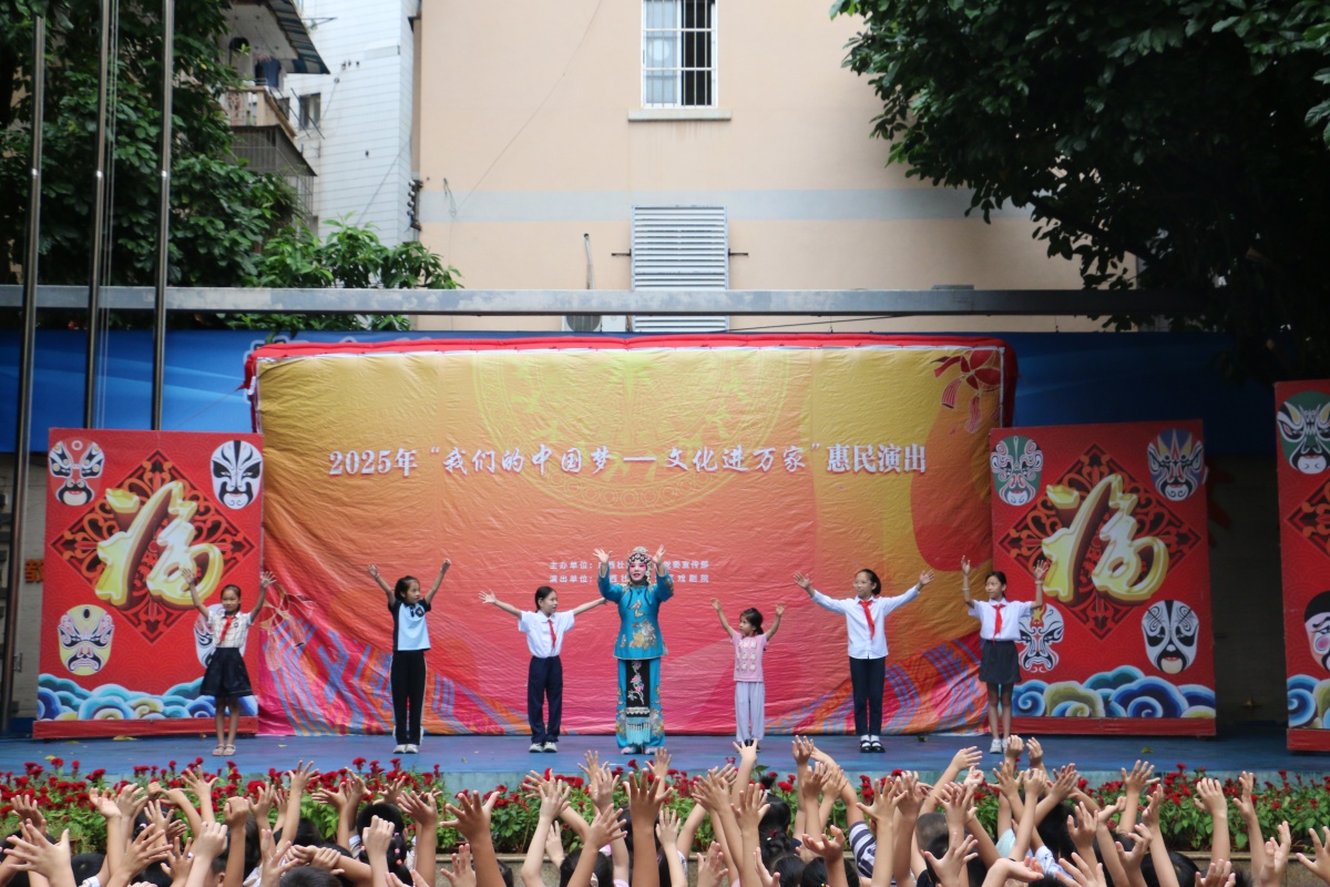 金秋十月,萬眾歡騰,神州共慶。為迎接祖國母親76歲華誕,南寧市南湖小學于9月30日開展了“童心迎國慶 國粹頌祖國”迎國慶戲曲進校園活動,全體師生一起走近國粹藝術,感受文化魅力,根植家國情懷。 此次活動將南湖小學愛國主義教育及傳承中華優秀傳統文化主題活動與廣西壯族自治區黨委宣傳部主辦的“2025年‘我們的中國夢——文化進萬家’惠民演出”相結合,特別邀請到廣西壯族自治區戲劇院的藝術家們帶來精彩演出。這既是一場國粹藝術的視聽盛宴,更是一次“童心向祖國”的文化致敬。 活動伊始,一首京歌響徹校園,激昂的音符如同靈動的火焰點燃了全場的熱情,同學們精神振奮。主持人向同學們詳細介紹京劇行當“生旦凈末丑”的過程中穿插著精彩片段展示,讓同學們直觀領略各行當魅力。京劇《三岔口》片段,演員們在暗夜中僅憑精湛技藝展開激烈打斗,動作干凈利落、配合默契,引得同學們屏息凝神。《掛畫》片段,演員將角色的情感融入每一個細微動作,令人陶醉。互動環節里,孩子們踴躍上臺,在專業老師的指導下模仿戲曲動作,親身體驗其韻味。京劇現代戲《智取威虎山·迎來春色換人間》氣勢恢宏,再現英雄豪情。戲曲絕活《變臉》將氣氛推向高潮,演員快速變換的臉譜讓人眼花繚亂,同學們的“叫好聲”此起彼伏。最后,演員們齊唱戲歌《沒有共產黨就沒有新中國》,歌聲嘹亮,情感真摯。 學校通過這樣的活動,為傳統文化傳承搭建平臺,讓古老藝術在校園中煥發生機。同學們近距離感受戲曲魅力,激發了他們對傳統文化的興趣。不少同學表示,今后會更加關注和學習戲曲文化,努力成為中華優秀傳統文化的傳播者。此次迎國慶活動形式新穎,別開生面,精選切入點帶動愛國主義教育的開展,效果喜人。 |
