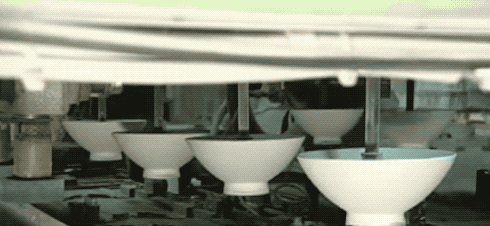 一樣是穿過圓環的吊燒工藝,等陶瓷勺燒成后切除掉這個附著圓環,并打磨圓潤。