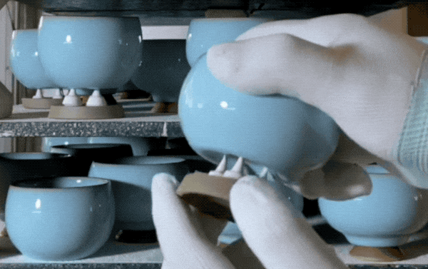 燒完了再小心去掉支釘架。由于釉料和支釘的接觸面看起來比芝麻還小,也被稱為“芝麻支釘”。