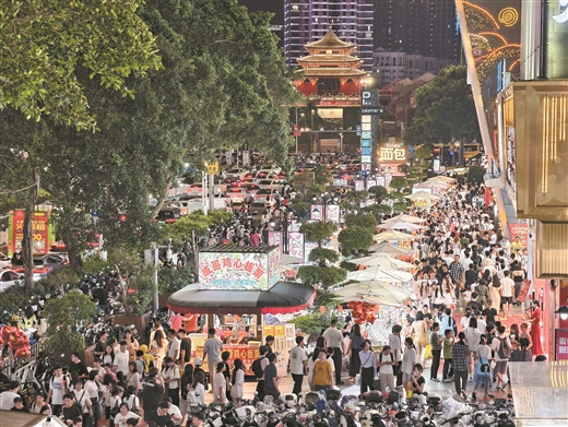 國慶中秋假期熱鬧非凡的南寧市朝陽路。 廣西云-廣西日報記者 徐天保 攝 國慶中秋疊加市場熱度攀升。各地紅色旅游景區創新展陳方式和體驗活動,江西井岡山、陜西延安、湖南長沙橘子洲頭、浙江嘉興南湖等地游客云集,市民游客在參觀旅游中涵養家國情懷。豐收、中秋主題備受青睞,江西婺源縣篁嶺景區“曬秋文化季”、上海天文館“月球漫步”廣受歡迎,湖北省博物館、沈陽故宮博物院舉辦中秋夜專場活動,吉林長白山景區推出“慢行賞秋”徒步線路。城鄉消費場景協同發力,湖南長沙商圈融合購物與演出,貴州三都水族自治縣以“村馬”賽事串聯長桌宴與文創集市。入境旅游迎來熱潮,重慶磁器口古鎮、西安大唐不夜城等景區外國游客增多,文化游、購物游等受到外國游客喜愛。 文旅融合發展創新場景體驗。非遺體驗氛圍拉滿,江蘇南京熙南里“百戲燈會”、安徽銅陵打鐵花、河南洛陽龍門古街非遺吐火民俗等廣受歡迎。北京舉辦第九屆中國戲曲文化周,上演昆曲、贛劇、秦腔等精彩劇目。假期演出展覽精彩紛呈,中國美術館“全國寫意美術作品展”、中國東方演藝集團舞劇《永樂未央》、北京人藝話劇《雷雨》吸引大量觀眾。科技賦能新場景新體驗,深圳龍崗機器人主題街區、北京亦莊機器人主題餐廳和4S店、湖北隨州銀杏谷水幕電影等讓游客感受“文旅+科技”的魅力。 惠民便民措施激發消費潛力。全國舉辦超2.9萬場文旅活動,發放超4.8億元消費補貼。京津冀“旅游景區聯票”推動區域文旅資源共享。廣東、甘肅、重慶等地機關食堂、停車場向游客開放,河南老君山、山西晉城司徒小鎮等景區推出平價餐飲,貼心服務讓游客暖意十足。甘肅敦煌莫高窟啟用新一代數字導覽系統,杭州西湖、貴州花江峽谷大橋等景區應用智能預約、擁堵預警等技術,為游客提供實時信息參考,以智慧管理提升服務效能。 |