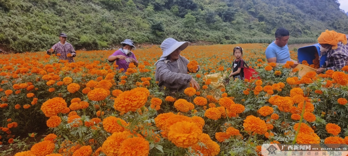 隆林蛇場鄉萬壽菊采摘現場。通訊員 楊麗花 攝