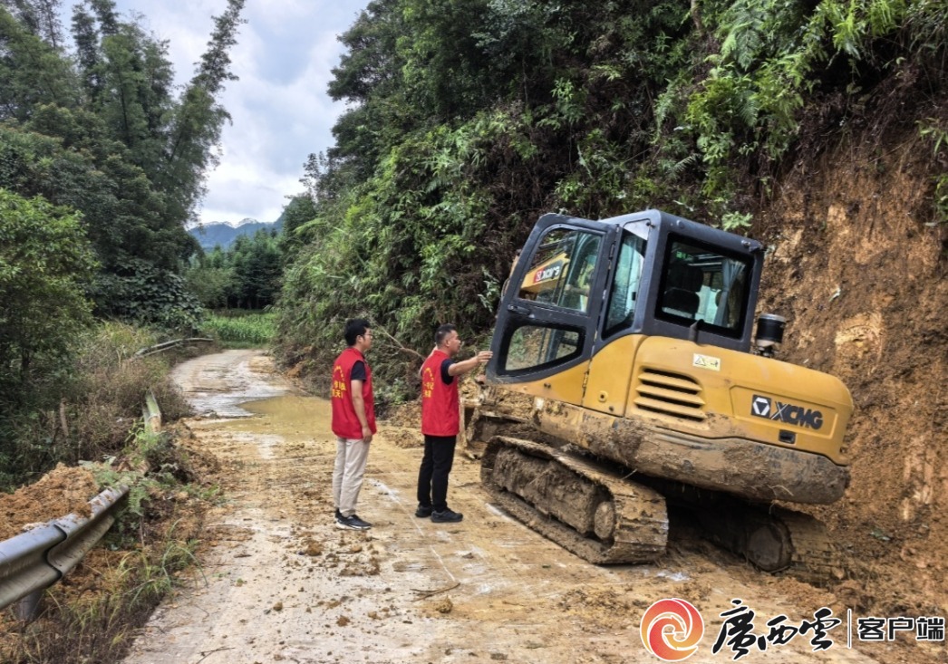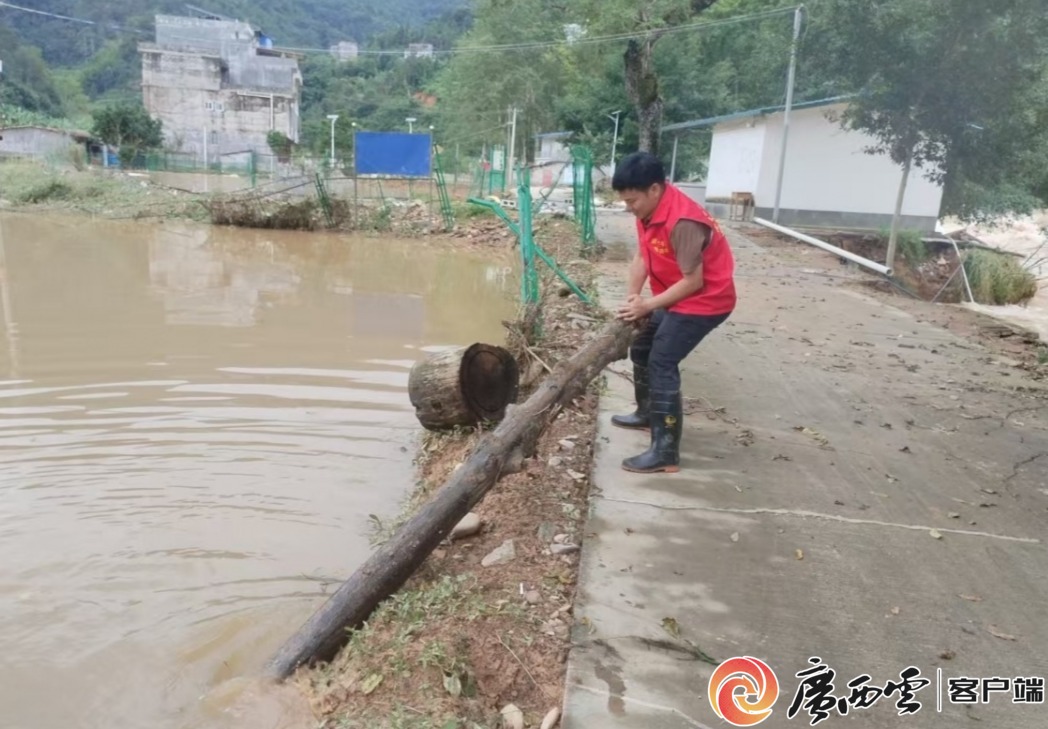 駐義備村第一書記韋振宇正在清理魚塘雜物。 在燕峒鄉保堂村,第一時間組織挖掘機清理安林屯堵塞道路。面對5戶受損房屋旁的隱患點,挨家挨戶敲門勸說:“雨還沒停,先去臨時安置點,家里的東西我們幫著守!”最終將5戶受威脅群眾全部安全轉移,實現“房屋受損但人平安”。協助受災群眾轉移生活用品的同時,協調挖掘機清理塌方路段,對道路下沉區域設置警示圍擋,確保不發生二次險情。