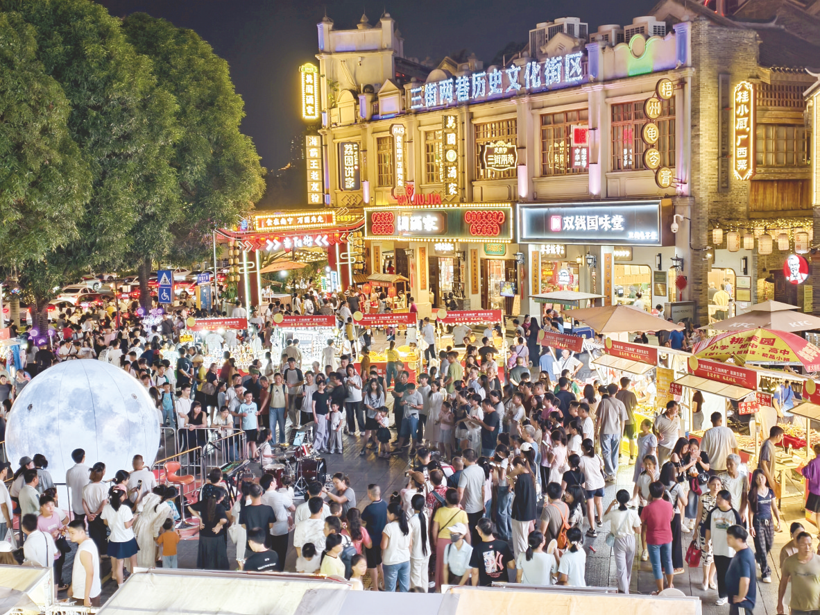 游客市民打卡“三街兩巷”。記者 宋延康 攝 煙火氣與文化韻交織,文旅消費“滿堂紅”。今年國慶中秋假期,南寧以“樂享雙節·南寧有禮”為主題,推出88項主要文旅體商活動和“雙節同慶·樂游南寧”精品旅游線路,全市接待游客數及實現旅游收入同比增長雙雙破十。如南寧青秀山風景區的豐收節上,巨型南瓜與五谷雜糧布景前游客絡繹不絕,“網紅打卡集贊享5折門票”活動帶動景區客流同比攀升,假日期間景區接待游客49.22萬人次,實現營業收入1722.65萬元;南寧園博園的煙花秀每日點亮清泉湖夜空,粉黛與向日葵花海間,南北非遺巡游與萌寵互動讓游客駐足。 今年國慶中秋“雙節”疊加,旅客出行需求集中釋放。10月1日假期首日,國鐵南寧局累計運送旅客80.6萬人次,較去年同期增長1%,其中,南寧火車站(含南寧站、南寧東站、南寧北站、南寧吳圩機場站、馬山縣站)旅客發送量創歷史新高,達30.7萬人次。美團旅行數據顯示,今年國慶假期,南寧文旅消費火熱,高星酒店預訂量同比增長約70%,來自北京、廣州、深圳、成都、重慶等地的游客較多。 為承接激增的客流并滿足不同群體需求,南寧市從“年輕潮玩、親子互動、文化體驗、美食尋味”四大維度精準布局業態,如針對年輕客群,舉辦第五屆良牙動漫盛典,在百益·上河城開啟“中秋漢服夜宴”,“三街兩巷”非遺手作市集提供壯錦織造、陶藝拉坯體驗等。 “白天看賽事、晚上逛夜市”的文旅體商聯動新模式也成為假期熱點。10月2日至3日,2025中國—東盟國際皮劃艇公開賽、中國—東盟國際槳板公開賽暨中國槳板俱樂部聯賽(南寧站)在南湖公園開賽,近千名中外選手參賽,岸邊觀賽游客超萬人次。國慶期間南寧市籃球黃金聯賽(簡稱“邕BA”)再度開戰,同步推出豐富的文旅商展銷活動,通過“體育搭臺、文旅商助陣”模式,成功將賽事“流量”轉化為消費“能量”和經濟“增量”。 埌西夜市、“三街兩巷”等商圈客流較平日增長顯著,平西夜市推出“觀賽打卡送酸嘢”活動,實現體育賽事與市井消費的雙向賦能。西關夜市、建政夜市等夜市人氣不減,夜間10時仍有大量游客穿梭在攤位間,煙火氣與歡笑聲交織成假日里的熱鬧圖景。 |