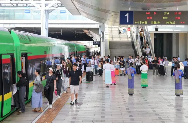 二是旅游列車助力假日消費。大力開行親子游、紅色游、康養游等各具特色的旅游列車和銀發專列,串聯沿線美食美景和人文名勝,為旅客提供多樣化的出行選擇和高品質的旅行體驗。加強假期跨境運輸組織,廣深港高鐵、中老鐵路分別發送跨境旅客126.2萬、1.05萬人次。