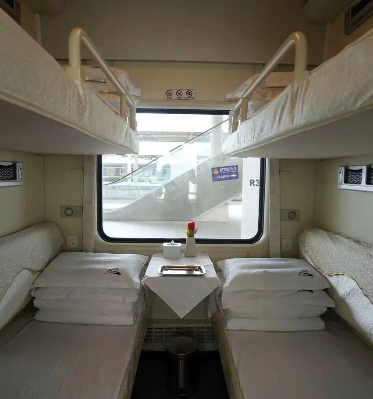 列車長李永衛介紹,“桂行天下號”在環境營造上注重溫馨與實用,硬臥與餐車采用胡桃木色飾面與柔和燈光,營造舒緩氛圍;臥具選用親膚透氣的壯錦紋樣鋪套,融合民族風情與舒適體驗。車廂設施也全面升級,鋪位護欄加長、爬梯加寬,衛生間加裝L型防滑扶手、無障礙坐便器和緊急呼叫系統,全方位保障老年旅客安全。列車還配備醫用冷藏箱、醫療器械和常用藥品,餐車提供低糖低鹽定制餐食,并增配微波爐與咖啡機,細致關照旅客健康與口味。