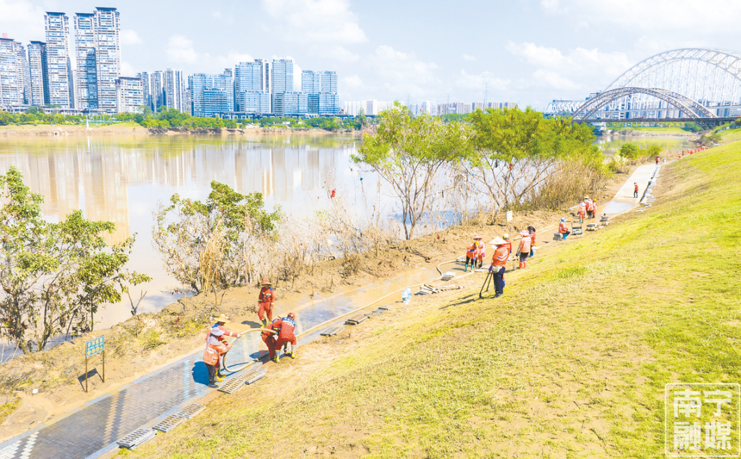 隨著洪水退去,南寧市迅速開展清淤工作,力爭早日恢復百里秀美邕江的容顏。