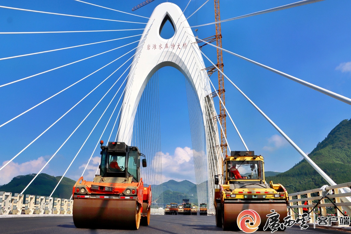 巖灘水庫特大橋瀝青攤鋪現場。鄧代兵 攝 巖灘水庫特大橋是項目主線瀝青路面攤鋪的“最后一公里”,為順利完成最后沖刺,巴羌高速指揮部堅持以黨建引領業務,依托“書記領辦”項目機制,由指揮部黨支部書記牽頭組建攻堅專班,針對大橋結構特點組織參建單位提前謀劃、掛圖作戰,優化施工組織,強化技術交底,嚴格把控混合料溫度、攤鋪厚度與碾壓遍數等關鍵指標,實現瀝青路面“內實外美”與行車舒適目標,全力打造品質路面。 目前,巴羌高速全線路基、橋梁、隧道、路面、交安、綠化工程已全部完成,房建、機電工程建設已接近尾聲,即將進入全面交工驗收階段,計劃年內通車。 巴羌高速通車后,將進一步優化河池地區交通網絡格局,加快激活沿線物流、貿易、文旅等產業集群融合發展新動能,為革命老區、長壽之鄉的振興發展注入強勁動力,同時強化桂黔聯通,助力廣西“南向、北聯、東融、西合”全方位開放發展格局及“一區兩地一園一通道”建設。