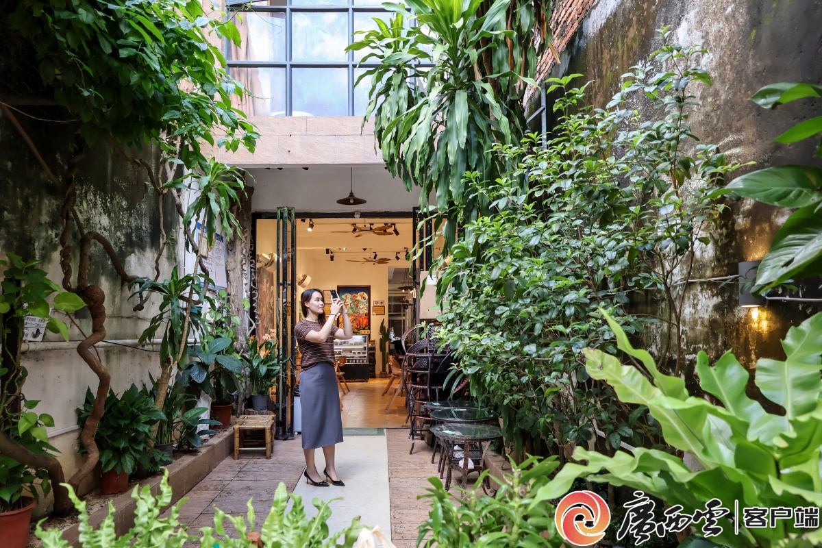 一米巷憑著獨特韻味,成了游客“出片”的取景勝地。陸敏 攝 與一米巷平行的文瀾巷,雖僅百米長,卻曲徑如波,墻上五色磚石交錯成畫,步步換景。巷名源于欽州才子黃文瀾的舊居——他曾是劉永福兒孫的教師,更執筆撰寫了劉永福回憶錄《劉永福歷史草》,這部著作是研究劉永福及中法戰爭的重要史料。 文瀾巷對面,“舊巷子·龍一”的招牌半掩于綠蔓中。推門而入,仿佛跌入一座文藝花園。