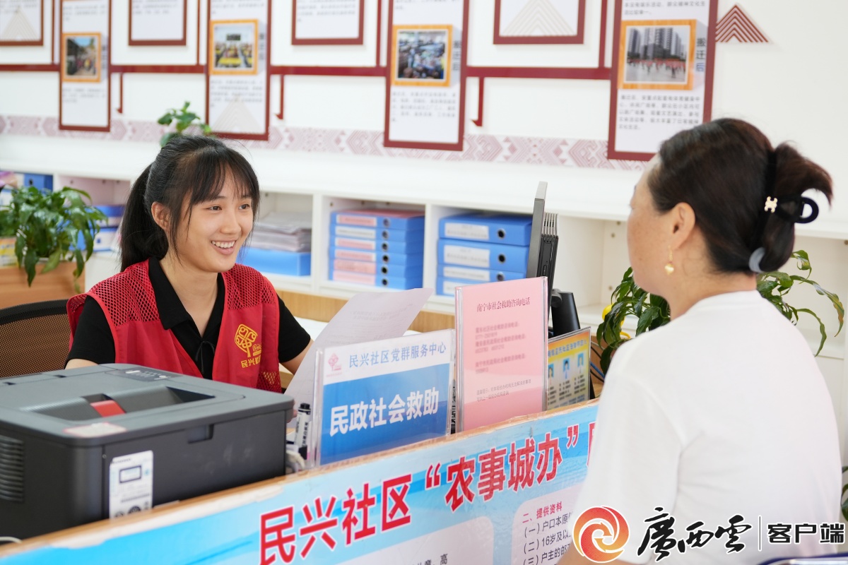 民興社區工作人員為居民群眾辦理低保業務。王旭 攝 震東集中安置區建設服務中心主任葉云瑩說:“現在3個小區都有各自的社區黨群服務中心,下樓就能辦理社保、養老等家門口急需的業務,黨群干群關系也更為融洽。” 從農民到工人,安居后如何樂業 共建 就業創業“一起干” 走進震東集中安置區里的昌泰茗城小區,園區整潔有序,樓棟之間寬敞明亮。樓棟下開設的小車間、小工坊儼然成為社區里一道獨特的靈活就業風景線。 “送完小孩上學就來上班,一天能掙50—60元工錢,現在工作和照顧家庭兩不誤。”在自己所住小區樓下,女工陸沙蘭正踩著縫紉機制作毛織產品,她告訴記者,如今已實現了“家門口”就業的愿望。 縫紉衣物、編織手工竹籃、制作塑料裝飾花……像陸沙蘭這樣的靈活就業者在安置區已有上千人,他們只需步行5分鐘去上班,甚至有時還能把工作任務領回家里完成。 安置區搬遷群眾通過“小梁送工”就業服務模式實現穩就業。王旭 攝 走進馬桂嬌的布藝窗簾店,繡娘們飛針走線,訂單已排到明年。“以前在山區只能務農,沒想到現在開了4家窗簾店,還能走出來帶領婦女同胞們,把產品賣到了香港。”這位曾經的大石山區脫貧戶感慨萬千。 如何讓搬遷群眾搬得出、穩得住、有就業、逐步能致富?近些年,隆安縣在安置區創新打造“小梁送工”就業服務模式,建設“小梁送工”零工市場,推出社區送單、企業派單、居民接單的就業服務機制,開發“小梁送工”數智化信息平臺,為搬遷群眾外出就業提供了穩妥便捷的點對點送工服務。 “有的搬遷勞動力年紀大、進廠難、就業難,他們愿意到農業基地務工,我們就安排車輛接送居民到基地和企業務工務農。現在,服務站每天都能夠提供300個以上的工作崗位,每年送工4萬多人次,務工居民日均可收入100至300多元。”梁佳介紹,目前“小梁送工”就業服務模式已延伸到全縣10個鄉鎮,用工訂單涵蓋500多家企業。 實實在在的送工服務,也托起了大家穩穩的幸福。2020年3月至今,“小梁送工”已累計組織送工18.8萬人次,幫助搬遷群眾增收超2500萬元。 從兒童到老人,新社區如何解決后顧之憂 共享 一老一小“一站齊” 在民興社區黨群服務中心旁的“廣西青空間”,每天都面向群眾免費開放。這里不僅是震東集中安置區各族居民群眾文化學習交流的活動室,更是安置區志愿者與青少年兒童閱讀互動的“第二課堂”,成為各族孩子交友學習、共同成長的重要場所。 “每到下午放學和周末,大人和孩子們都喜歡圍在一起,陪伴閱讀、互動游戲、開展課業輔導,一屋子都是歡聲笑語。”社區志愿者陸鳳珍向記者展示簽到本,上面密密麻麻全是孩子們稚嫩的筆跡,記錄著各族孩子在“青空間”里的成長足跡。