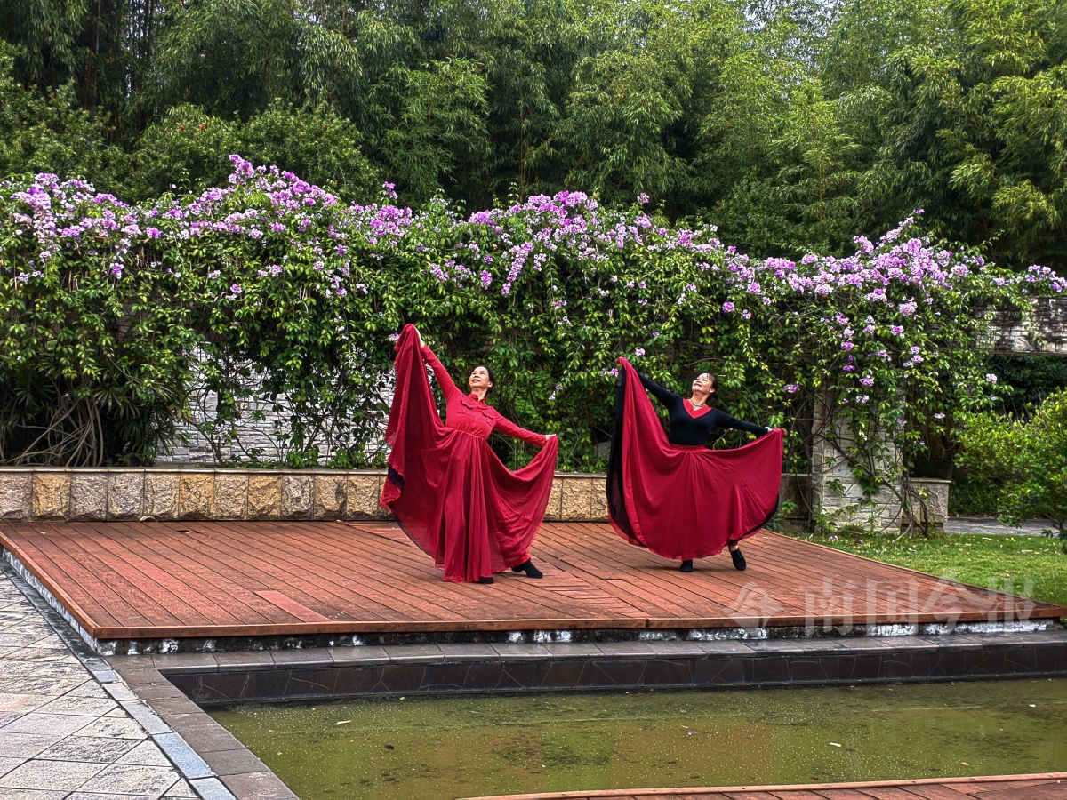 園林科技園紫色花海。通訊員 廖宏偉 周海將 劉洲瑩 園林科技園花海旁游人絡繹不絕:有人駐足花瀑下細賞花瓣,有人舉起相機定格“紫色浪漫”,還有人攜家帶口漫步花下,人人臉上都洋溢著沉醉的笑容。