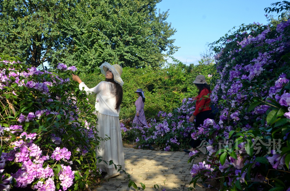 河東公園水之苑(東側竹林旁)盛開的蒜香藤。通訊員 秦成興 莫慧玲 限定“紫瀑”轉瞬即逝,趕緊約上三五好友,赴一場與花的約會吧。 |