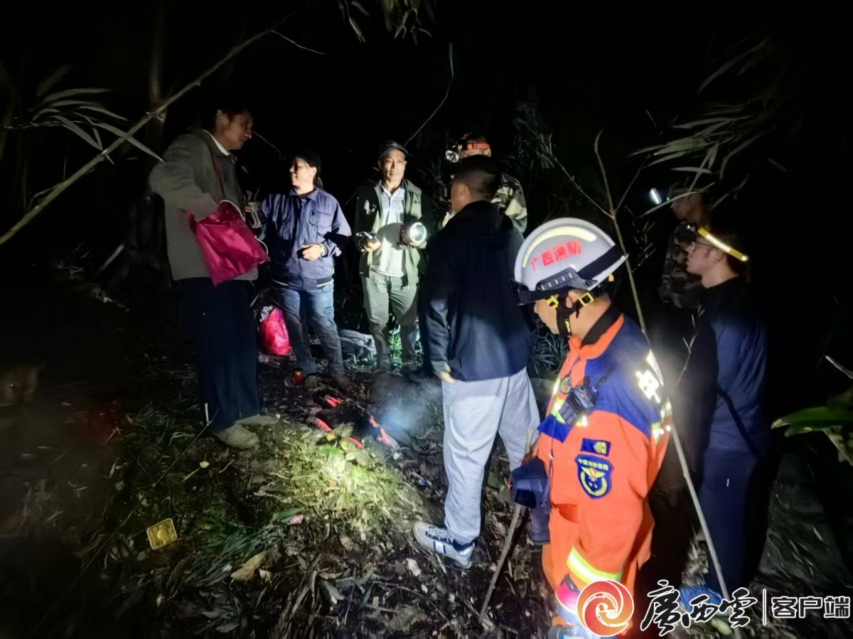 四方力量集結上山尋人。梁雨丹 攝 “心里就一個念頭,早點找到人,讓家里人安心。”一名鄉干部簡單的話語,道出了所有救援人員的心聲。汗水浸濕衣背,荊棘劃傷手臂,但搜尋的腳步從未停歇。 時間一分一秒過去,山下的家屬焦慮萬分。現場工作人員持續安撫。 臨近午夜,好消息終于從環江毛南族自治縣的標山村肯鬧屯傳來。有村民發現一名疑似走失人員,經核實,正是鄧某某!原來,他在山中尋找妻子時誤入歧途,走到了鄰縣。萬幸的是,他身體狀況良好。 “找到了!人平安!”這簡短的消息像一股暖流,驅散了所有救援者連夜奔波的疲憊。民族村村干部們未作停歇,立即連夜驅車,將鄧某某平安接回。