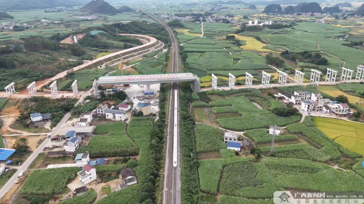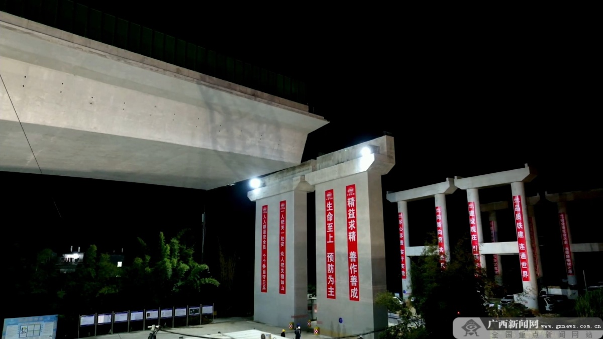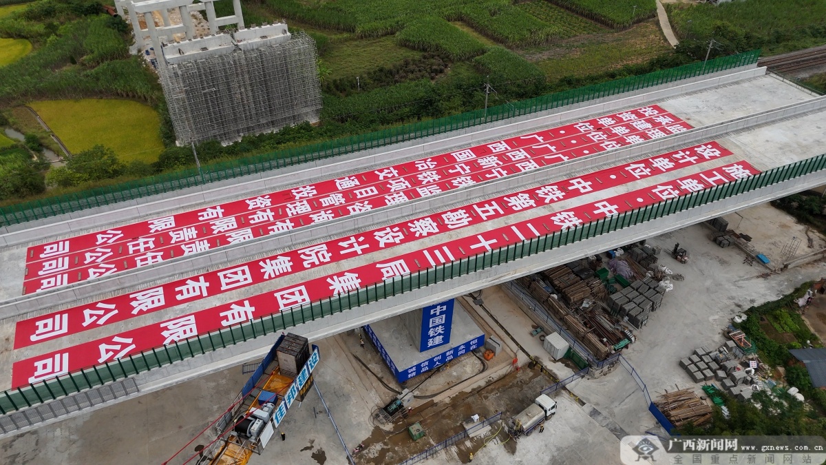 柳州高速過境線公路上跨衡柳鐵路立交橋完成轉體。