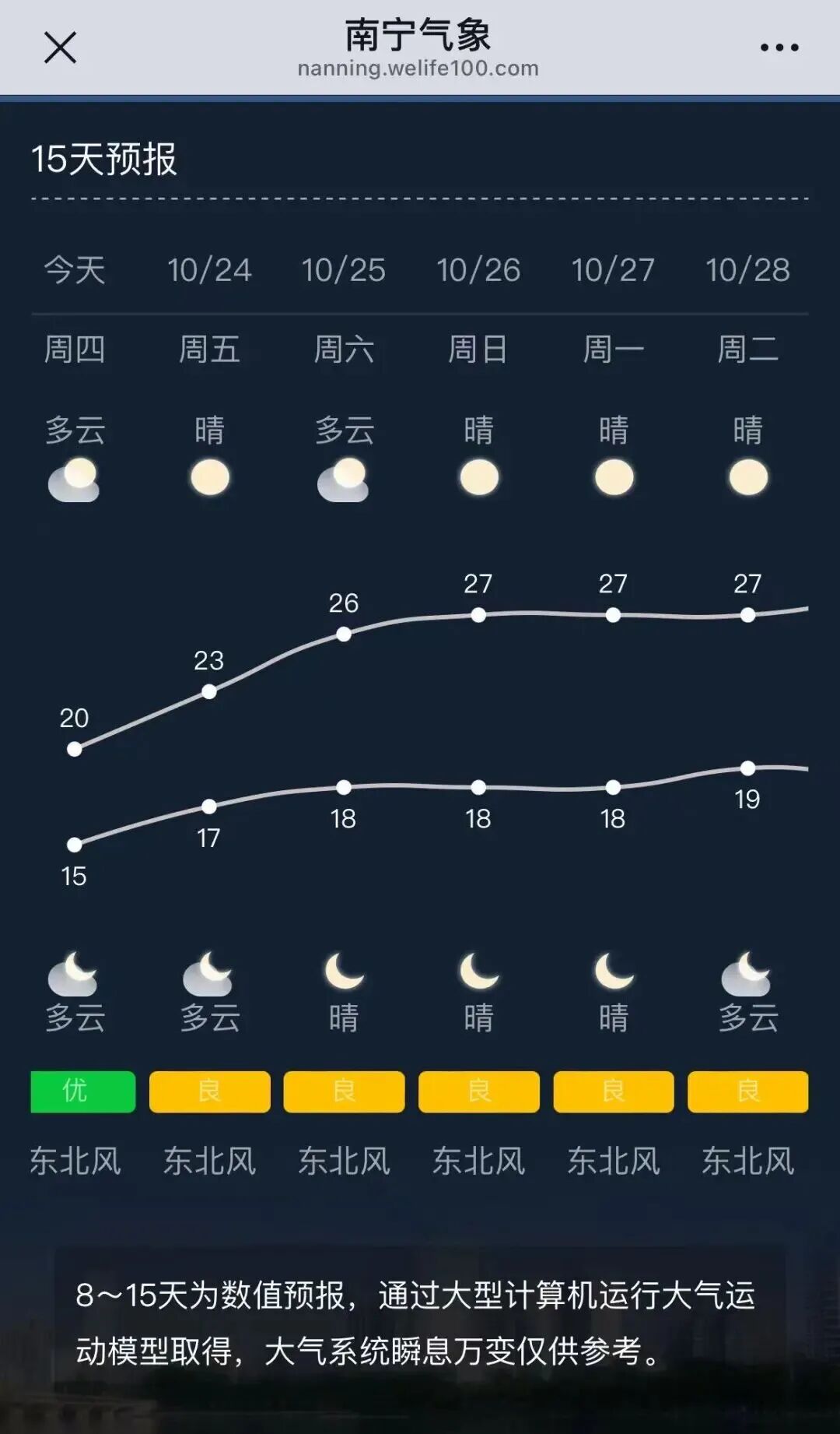不少網友都在社媒上感嘆“真的冷” 不過,10月23日開始 華南就要回暖了 短袖可能還有“出場機會”! 預計未來兩天 受冷高壓脊和“風神”環流疊加影響 南寧市體感持續清涼 多大風天氣 以多云到晴為主