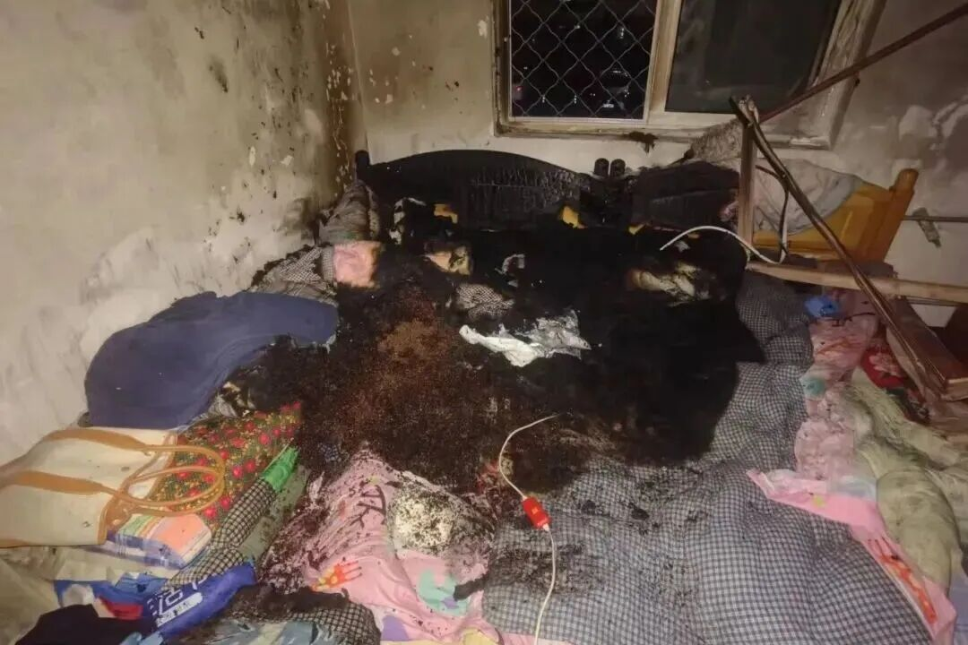 2024年10月8日,某小區一居民住宅樓臥室內電熱毯未關,引發火災事故。火災導致臥室內的床褥、室內裝修、照明燈、窗戶窗簾以及空調等物品遭受了不同程度的過火燒損,未造成人員傷亡。 案例二
