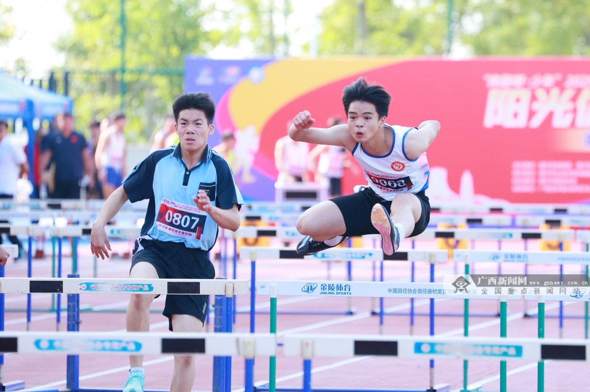 跨欄追逐。 據介紹,“奔跑吧·少年”2025年南寧市青少年體育系列活動分為青少年陽光體育大會、“酷動先鋒”南寧城市運動系列挑戰賽兩個部分,共計14個競賽項目。本次田徑賽事為青少年陽光體育大會比賽項目,按年齡分組進行短跑、中長跑、跨欄、跳躍、投擲等多個類別項目比拼。
