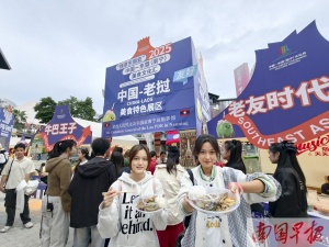 “筷意東南亞”2025中國—東盟(南寧)美食文化匯于10月23日至26日在南寧民歌湖舉行。本次美食文化匯活動吸引了近百家特色商戶參與,活動期間還將有50多場精彩演出輪番上演,20條特色水上船市驚艷亮相,市民游客可在此“吃、游、購、娛”。圖為市民在現場品嘗老撾美食。記者 鄒財麟 攝(廣西云-南國早報)